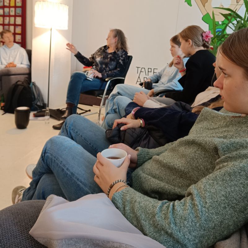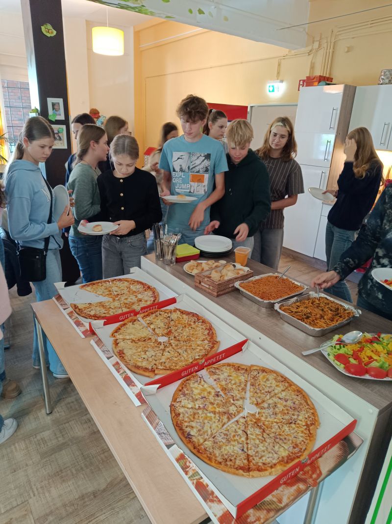 Am Dienstag, dem 16.09.25 besuchten 20 Schülerinnen und Schüler der Kinderhospiz-AG zusammen mit Liesa Bobbert und Julia Kopper den "Ambulanten Kinder- und Jugendhospizdienst" (AKHD) in Lünen. Vor Ort wurden wir liebevoll von Ricarda und Nicole Bunk empfangen. Der Tag startete mit einer Gesprächsrunde, in der Frau Berisa vom Tod ihrer achtjährigen Tochter Melek erzählte. Melek hatte das Down-Syndrom und erkrankte im Alter von acht Jahren an Krebs. In Folge ihres durch die Chemotherapie geschwächten Immunsystems verstarb sie 2019 an einer Lungenentzündung. Frau Berisa erzählte sehr emotional von der Zeit von der Diagnose bis zum Tod. Sie zeigte aber auch, was für ein fröhliches Mädchen Melek vor ihrer Erkrankung war und wie gerne sie z. B. jede Art von Schokolade gegessen hat. Die Schülerinnen und Schüler waren von den Schilderungen sehr angefasst.
