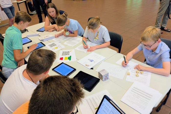 Neben diesen Aktivitäten gab es auch eine informative Kurzpräsentation für die Eltern, in der die Bedeutung der lateinischen Sprache und Kultur bis in die heutige Zeit erläutert wurde. Hier konnten die Erwachsenen erfahren, wie Latein noch immer einen wichtigen Einfluss auf unsere Sprache und Kultur hat.