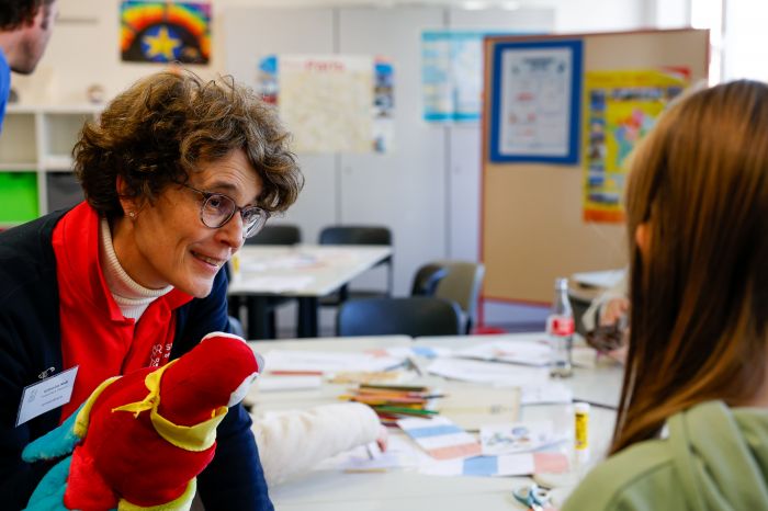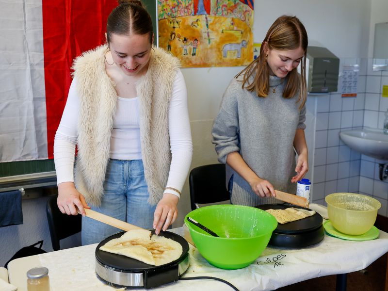 Auch für kreative Köpfe war einiges geboten: Die Kunstfachschaft lud zum Gestalten von GSC-Buttons ein, die Musikfachschaft begleitete die Viertklässlerinnen auf einer Safari durch die Schlaginstrumente des GSC. Für Bewegung sorgte die Fachschaft Sport mit einem abwechslungsreichen Parcours in der kleinen Turnhalle. Dank der Unterstützung der Sporthelferinnen waren die jungen Besucherinnen jederzeit gut betreut – ganz nach dem Motto „Die Großen helfen den Kleinen“.