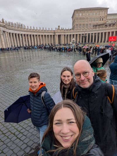 Glücklicherweise war das Wetter sehr mild, und wir konnten bei Sonnenschein schöne Bilder von den beeindruckenden Bauwerken machen. Nur als wir in der Schlange zum Petersdom standen, musste es ausgerechnet regnen. Damit wir auf die Kuppel des Doms steigen durften, musste man dann auch noch zusätzliche 10€ bezahlen. Das lange Warten, um in den Petersdom zu kommen, und die 500 Treppenstufen hoch auf den Petersdom haben sich aber trotzdem gelohnt. Am darauffolgenden Tag verbrachten wir weitere zwei Stunden wartend auf dem Petersplatz, um Papst Leo beim Angelusgebet zu sehen. #Qualitytime