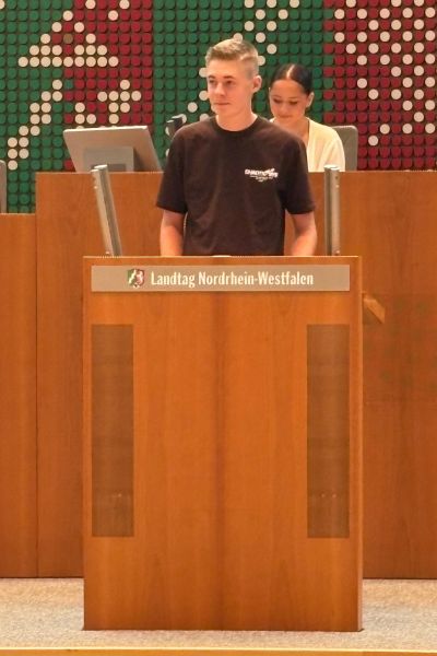 Nach einem gemeinsamen Frühstück startete das Programm mit einer Simulation einer Plenarsitzung. Die Jugendlichen nahmen nicht nur auf den Sitzen der NRW-Abgeordneten Platz, sondern schlüpften in die Rolle der Abgeordneten verschiedener Fraktionen. Dabei debattierten sie lebhaft über einen Gesetzesentwurf zum Thema „Wahlrecht ab Geburt“. Argumente wurden ausgetauscht, Reden gehalten und sogar eine Abstimmung durchgeführt – fast wie im echten Politikbetrieb.